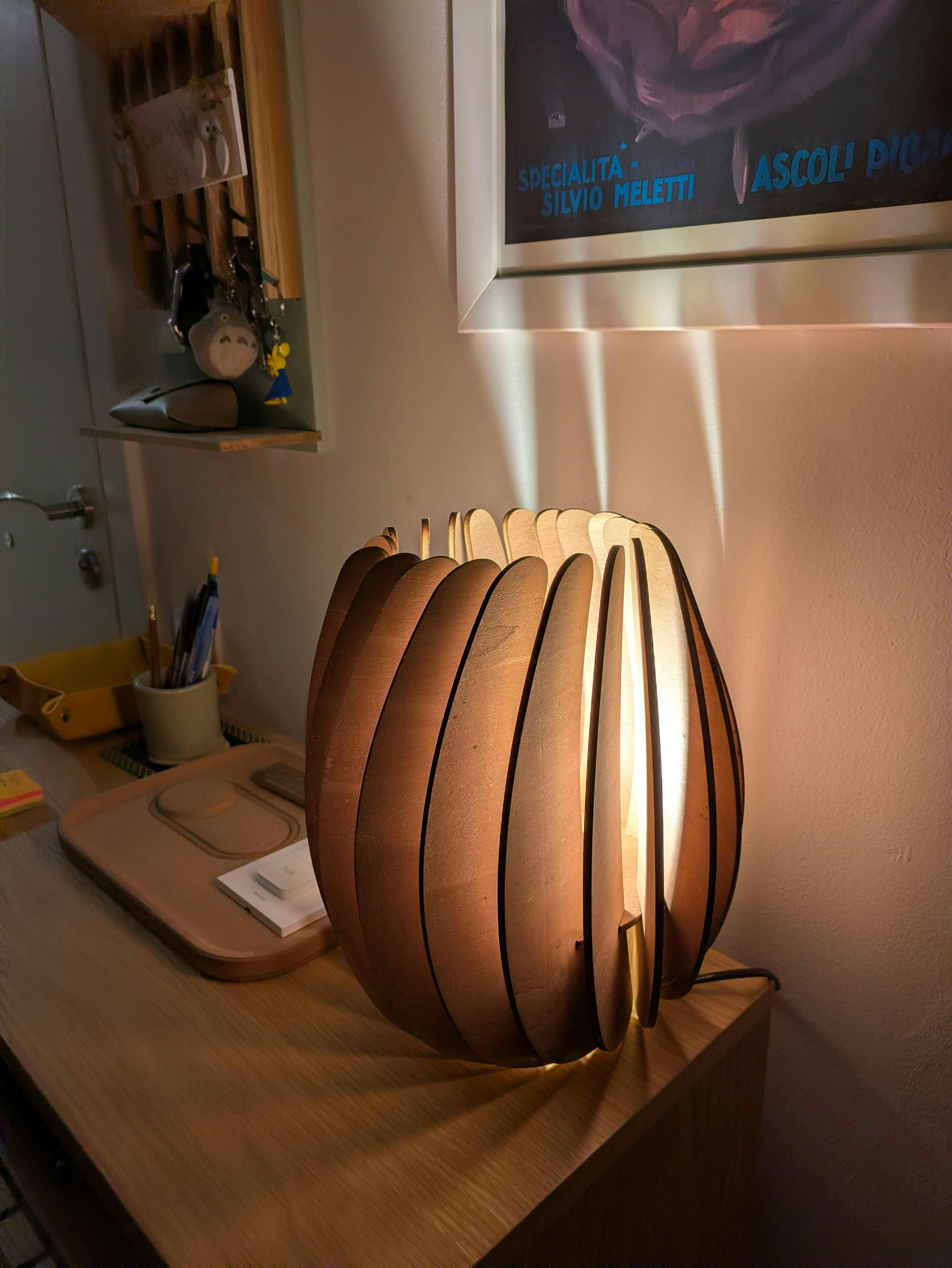 La Ovalada captures the quiet rhythm of breathing. Its oval shape opens gently, letting light expand softly, as if exhaling serenity into the room. Handcrafted from eco-sustainable poplar wood, it brings warmth and balance to modern interiors — a reminder that beauty can emerge from stillness. Each lamp includes a European plug cable, switch, and E27 socket.